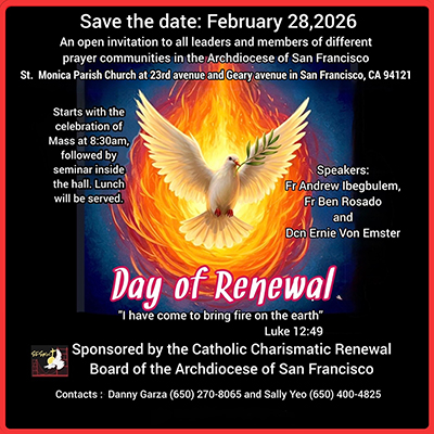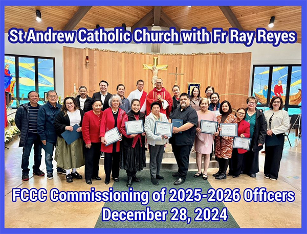Congratulations to all the commissioned Officers of the Filipino Catholic Charismatic Communities of the Archdiocese of San Francisco for the year 2025-2026 led by their re-elected Head Coordinator Sis. Tess Garza.