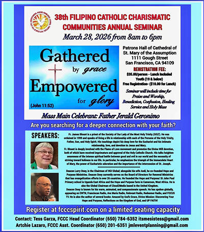 Congratulations to all the commissioned Officers of the Filipino Catholic Charismatic Communities of the Archdiocese of San Francisco for the year 2025-2026 led by their re-elected Head Coordinator Sis. Tess Garza.